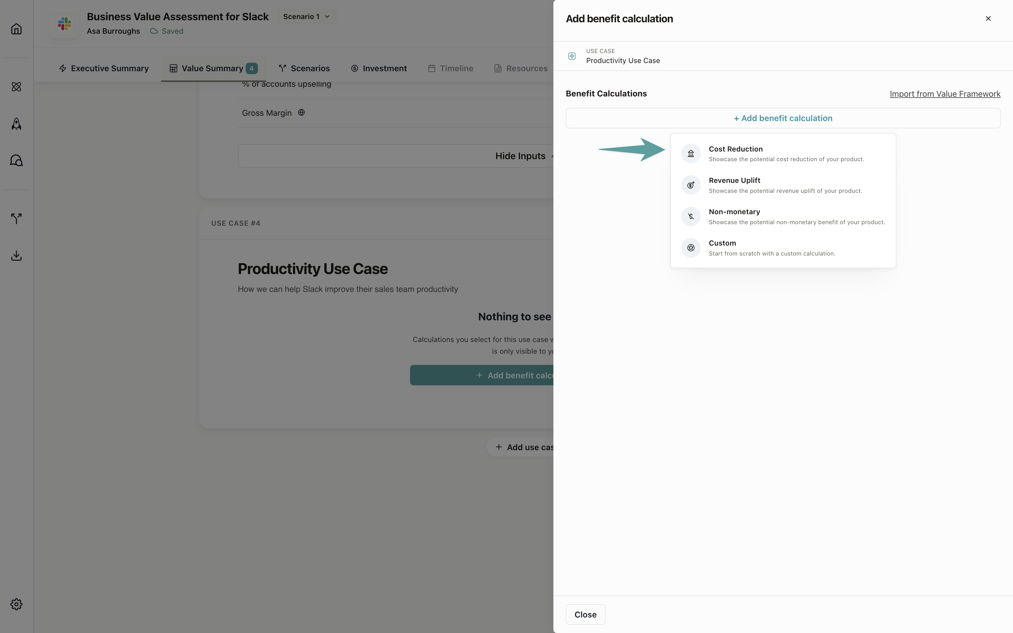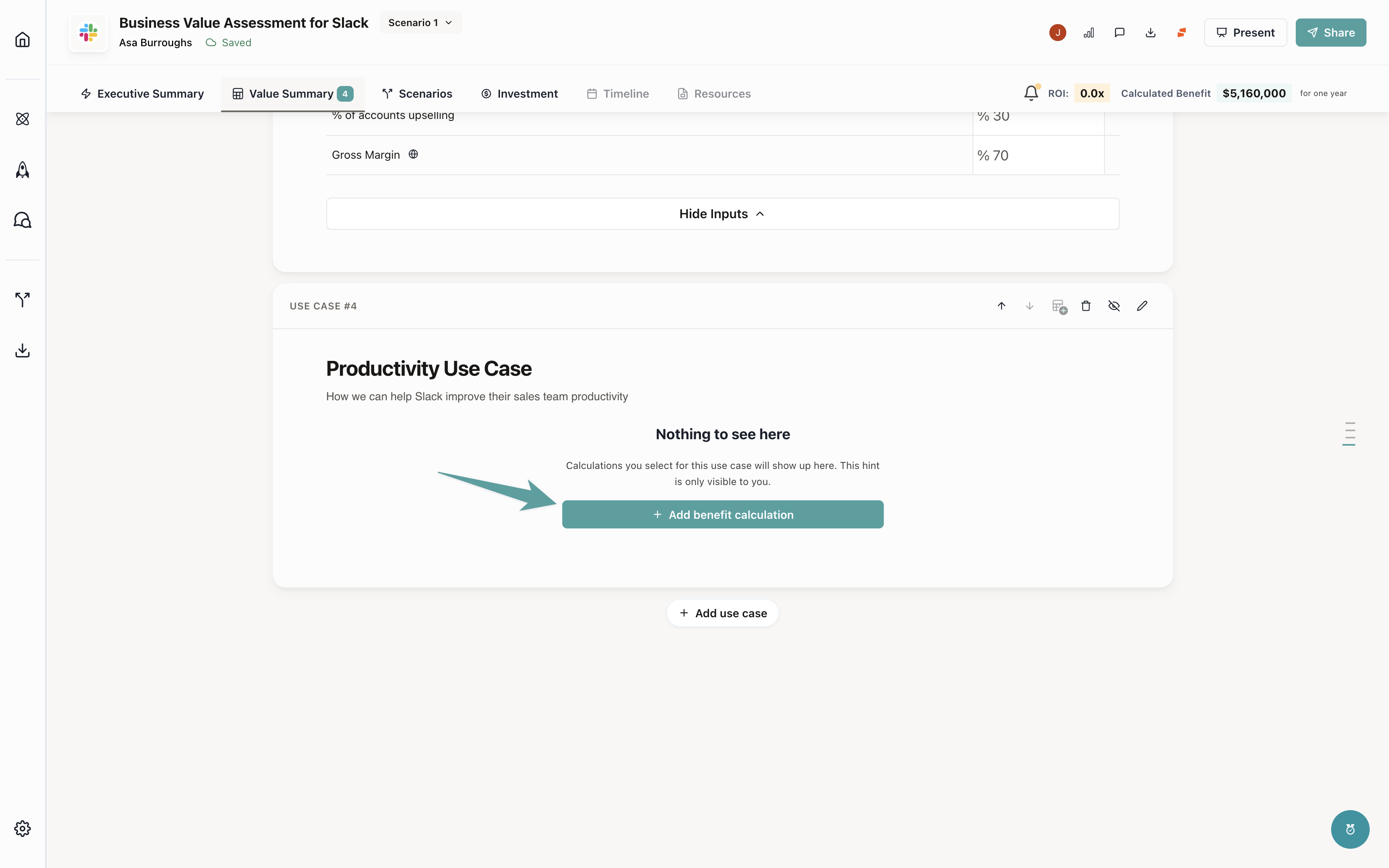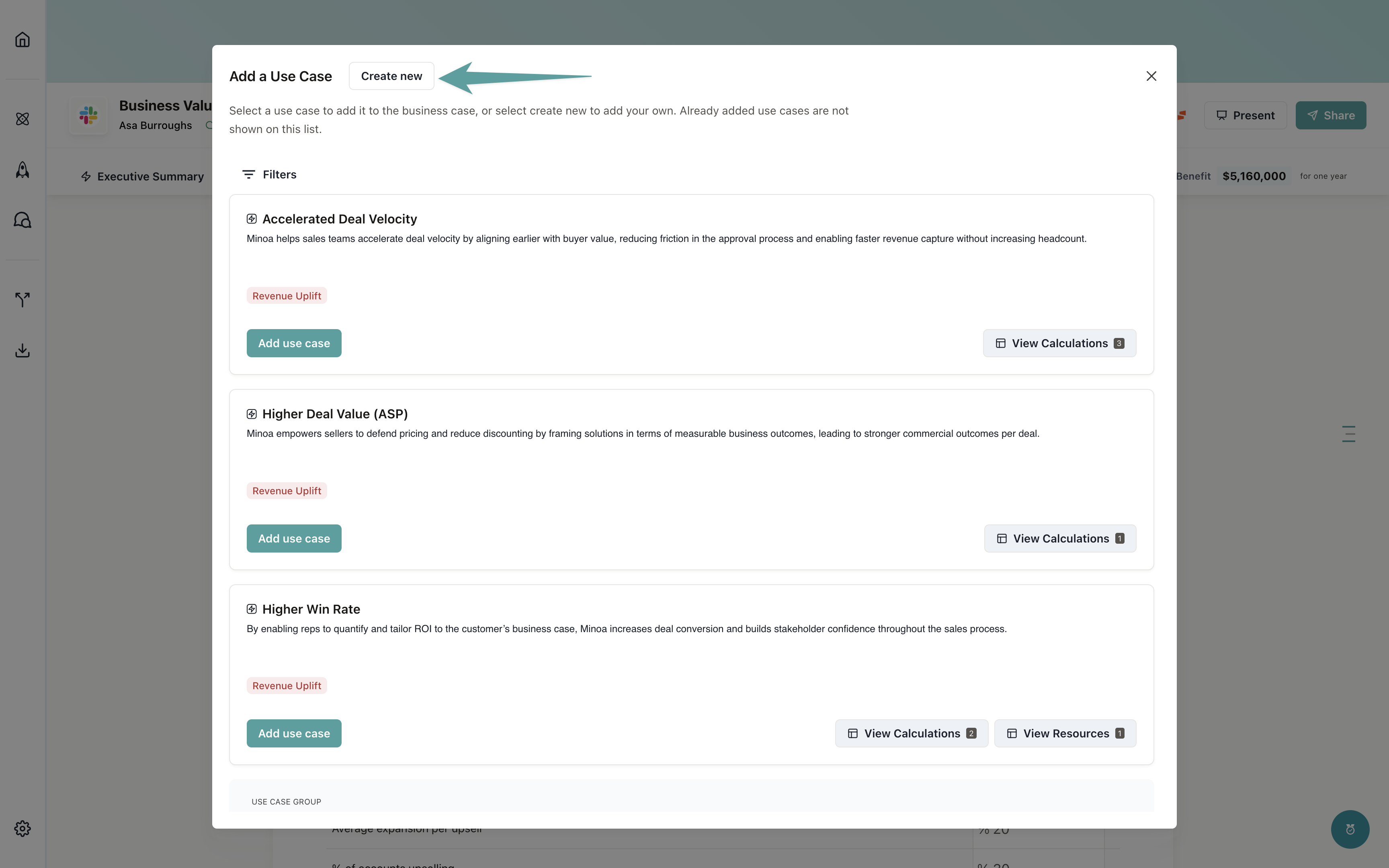 You can add a calculation to an existing use case or create a new one. For this recipe, we’ll create a new use case.- Navigate to the calculation tab of the Value Summary